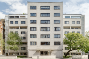 Coates’ reputation faded from view and by the late 1970s Modernism itself had become a dirty word, associated with many ugly, crime-ridden and indefensibly shoddy tower blocks of the 1950s and 60s. Perhaps it was exactly the right moment to remember Wells Coates. His rehabilitation started in 1978 with the publication of the superbly researched and written “Wells Coates – a monograph” by Sherban Cantacuzino, then executive editor of the Architectural Review. A steady stream of articles in the national and architectural press followed over the years and his buildings were listed by English Heritage in an effort to prevent demolition. A memoir of Coates written by his daughter Laura Cohn was published in 1999 giving many insights into Coates’ life and personality. His flats at Lawn Road and here at Embassy Court were both been lovingly restored in the first few years of the 21st century. We can perhaps see his achievement now better than for many a year.